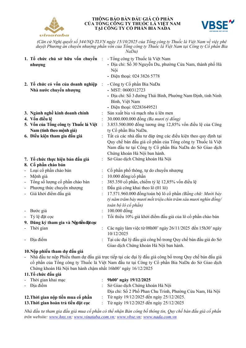 THÔNG BÁO BÁN ĐẤU GIÁ CỔ PHẦN